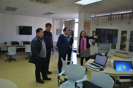 座谈后,在郭馨梅主任等人的陪同下,陈伟书记一行参观了中心的现代企业管理实习区、现代服务业实习区、模拟法庭及还在改造施工中的金融实验室。参观过程中,郭馨梅详细介绍了实习区的功能设置、建设理念和软硬件的配置。