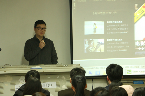 黄国策导演首先给同学们播放了以南京某大学毕业季为题材的纪录短片,现场同学们为画面中毕业生们真实的笑与泪所动容,视频播放完后,教室里响起了阵阵掌声。