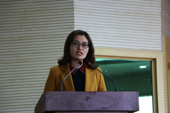 图为文学法院副院长范红霞作为二级学院代表发言 摄影:谢伟