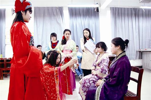 图为2014级会展经济与管理学生表演古代婚礼 吴晓淳 摄
