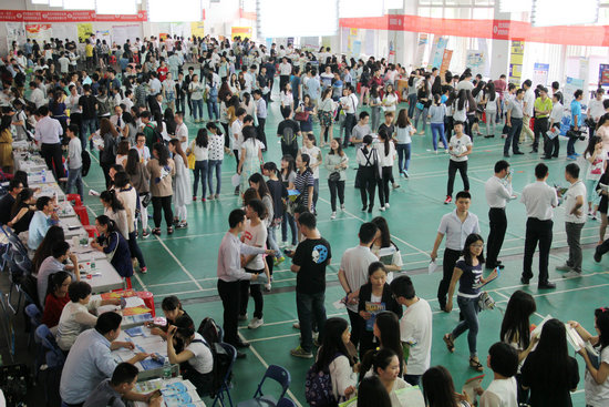 新闻中心讯(记者 李雄风)5月14日上午9点,新葡的京集团35222vip2015年春季招聘会在该校体育馆举行。中国平安银行、前程无忧、中国仁寿保险、红鼎豆捞、阿香餐饮、如家酒店集团等116家企业现场摆点招贤纳士,向该校应届毕业生提供了客户经理、综合主管、会计、安卓工程师、高级角色原画师、原画主美等500多个就业岗位。