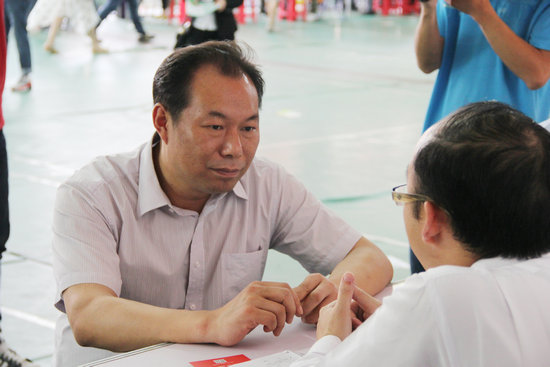 图为该校学生正在认真填写登记表 摄影:李素雅