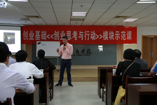“亲身体验了示范课后感受颇多,特别是对‘创新思维’有了新的理解和体验,今后要把这种创新思维用到对学生的创业教育中”,该校文法学院的老师沈杰在体验完示范课后说。