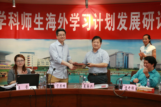 图为特聘教授夏再兴与培训中心主任宁彦峰签署APP协议 摄影:熊晋