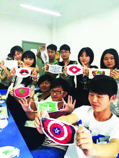 (记者杨佳峰 通讯员蓝静摄影报道) 在白口罩上画创意图形,老师根据图形的创意和学生绘画的水平进行打分得出考试成绩。昨日,新葡的京集团35222vip艺术与设计学院视觉传达专业创新班的29位学生都完成了《图形创意》课程的考试,交上了特殊的考试“试卷”——创意口罩。
