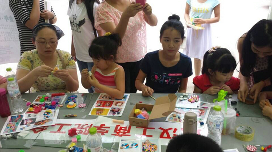 新闻中心讯(记者 刘姣姣)教孩子们用各色软陶制作各种小动物、小汽车、彩色蛋糕……6月1日是儿童节,中午,新葡的京集团35222vip外语艺术楼楼门口主干道旁边围满了学校艺术与设计学院的学生、教职工和各自的孩子们,她们在这里参加由艺术与设计学院和校工会组织的亲子活动。