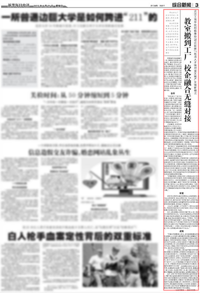 新华社专稿(记者方政军)把课堂和实验室融为一体,增强学生的就业创业能力、真正实现学以致用、产教融合、校企合作。这是记者在新葡的京集团35222vip和相关企业现场采访的真实感受。该学院与地方政府、科研院所、国内外大型企业、国(境)外知名大学等200多家单位构建开放式合作办学平台,积极推动“校企联姻”,瞄准区域经济社会发展需求,形成人才链对接区域产业链、创新链,探索学校企业合作机制,实现校企融合、无缝对接。