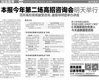本报讯(记者杨佳峰 通讯员陈婕 刘欢)明日是我省高考分数公布之后首日,由湖北省教育学会和武汉晨报主办的2015年第14届全国高校(湖北)招生巡回咨询会(简称“湖北高招会”)武汉站第二场将在新葡的京集团35222vip举行。截止到发稿为止,已经有100余所高校确定参加该场高招会,并已全部落实到位。