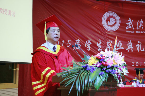 张金隆教授发表了意味深长的讲话,他代表学校向全体毕业生表示热烈的祝贺,向辛勤工作、无私奉献的老师和家长们表示衷心的感谢和崇高的敬意。他深情地说:“同学们,你们即将离开这片承载了你们的汗水与欢笑,留下了你们足迹的美丽校园。你们当中,有些人就职于国内外知名企业;有些人考取知名学府硕士研究生;有些人创办了属于自己的企业;有些人成为国家公务员;有些人参加了“三支一扶”计划,将自己的青春深深地植根在祖国基层的土地里。在你们身上,传承了一届又一届工商人的精神,为学校赢得了荣誉,学校为你们而骄傲!”