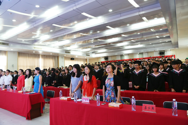 图为毕业典礼开始奏唱国歌仪式 摄影:刘亚婷