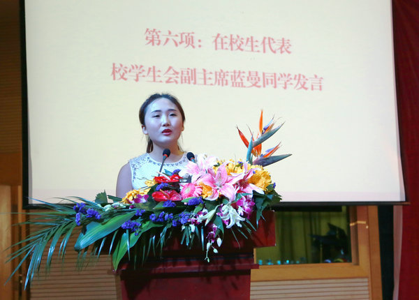 图为在校生代表蓝曼发言 摄影:刘亚婷