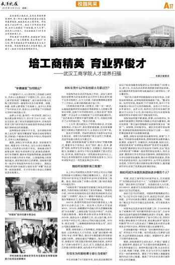学校秉承“弘德博问、和谐拓新”的校训精神,以“培工商精英、育业界俊才”为己任,努力创造适合学生健康成长与成才的环境,形成有特色的人才培养模式,涌现了一批批个性色彩鲜明的学生。