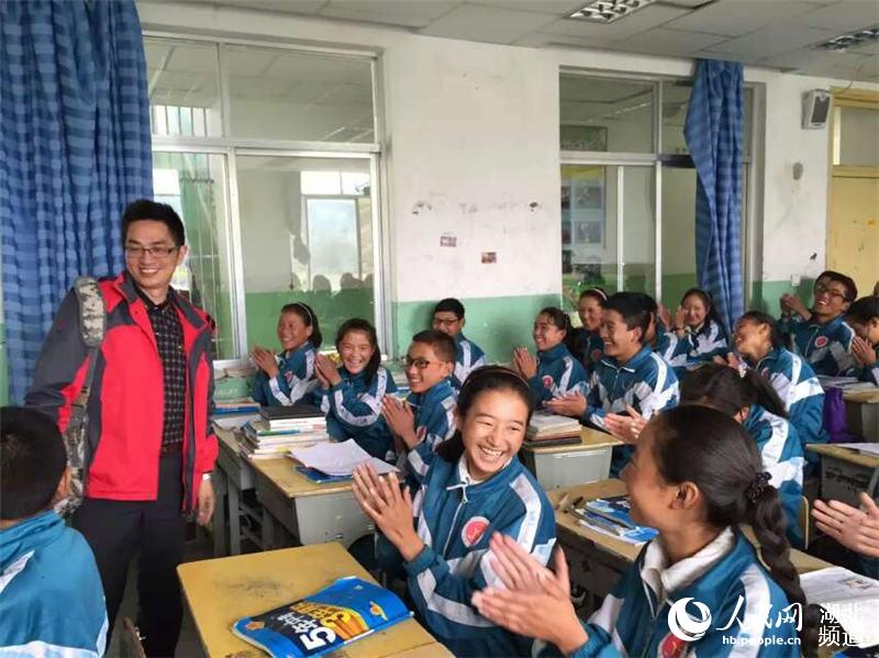 张兆学在课堂上与学生们见面,学生们高兴地鼓掌欢迎