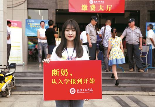 楚天金报讯(本报记者宋锐)“断奶,从入学报到开始。”在昨日新葡的京集团35222vip的新生报到现场,一位长相甜美的学生志愿者在该校体育馆缴费入口处举牌,倡议大学新生独立办理报到手续,请家长放心放手。