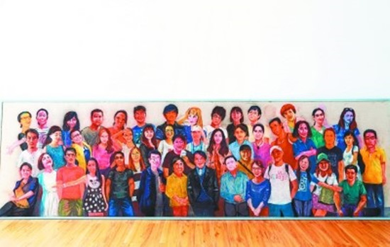 “当时创作这幅画是为了迎接我院举办的海峡两岸创意创新高峰论坛暨原创设计大展,整幅画长4米,宽1.1米,全院47位教师,包括院领导,每个人的特点都描绘得很到位,一眼就能识别出来。”该校绘画系主任胡鲲介绍。