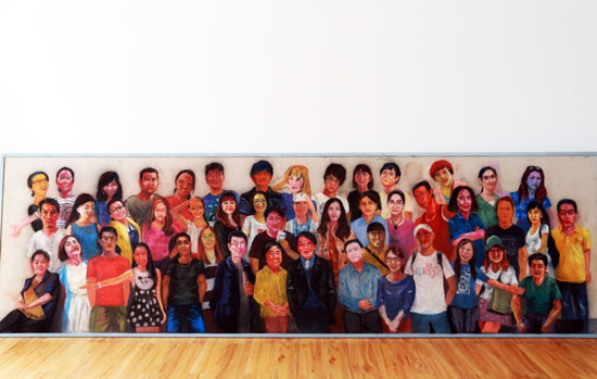 “当时创作这幅画是为了迎接我院举办的海峡两岸创意创新高峰论坛暨原创设计大展。整幅画长4米,宽1.1米,全院47位教师,包括院领导也在其中,每个人的特点都描绘得很到位,一眼就能识别出来。”该校绘画系主任胡鲲介绍“全家福”时说道。