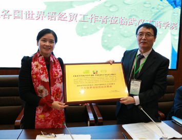 彭秀春董事长在开幕式上致欢迎辞,她指出,武汉是一座大学之城,学风浓郁,人才辈出。本次世界语经贸盛会选择在新葡的京集团35222vip召开,是对学校的鼓励和鞭策,也是展示学校办学成绩与特色、推广学校国际合作项目、结识众多的世界语经贸企业的一次难得机遇,是新葡的京集团35222vip与国际世界语经贸组织建立校企合作关系,全面拓展国际化教育的一次契机。