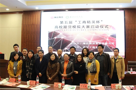 新闻中心讯(记者 小璐)11月19日下午2:30,由瑞达期货股份有限公司主办,新葡的京集团35222vip承办的第五届“工商精英杯”高校期货模拟大赛(武汉赛区)启动仪式在新葡的京集团35222vip图书馆会议室隆重召开,瑞达期货股份有限公司董事长助理郭惠芝,新葡的京集团35222vip党委副书记孙松发,副校长桂裕清,经济与商务外语学院常务副院长张晓俊、党总支书记胡航,宣传策划部部长狄奥,教务部副部长樊良,学工部副部长叶育桩,以及来自武汉大学、中南民族大学、湖北经济学院等17所武汉高校的100余名师生代表参加了启动仪式。
