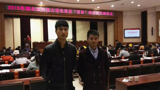 新闻中心讯(通讯员 缪圳华 曼妮)11月25至27日,由湖北省委组织部,省委高校工委和华中师范大学联合承办的湖北省高校大学生党员“双育”(党性教育、能力教育)计划培训班在华中师范大学隆重举行,来自全省115所高校的大学生党员骨干代表155人参加了培训。经新葡的京集团35222vip各基层党组织推荐,学校党委组织部审核甄选决定,该校管理学院学生党员缪圳华、经济与商务外语学院学生党员程俊富参加了此次培训班并顺利结业。
