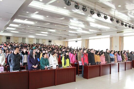 大会在庄严的国歌声中拉开帷幕。随后,左宗文、王程军分别宣读了《关于表彰2014-2015学年“优秀辅导员”和“优秀分团委书记”的决定》,授予张培等9名同志“优秀辅导员”称号,授予文法学院沈杰、电子商务学院曹旭磊、民族教育学院闵金伟3名同志“优秀分团委书记”称号。