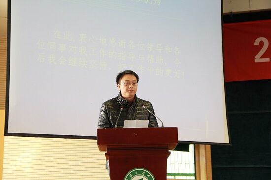 来自文法学院的沈杰老师作为获奖的分团委书记代表做作了发言,他介绍了文法学院本学期在文化活动、团队建设等方面取得的优良成绩,并勉励大家继续发扬积极进取的精神,在学校的各项活动中再创佳绩。