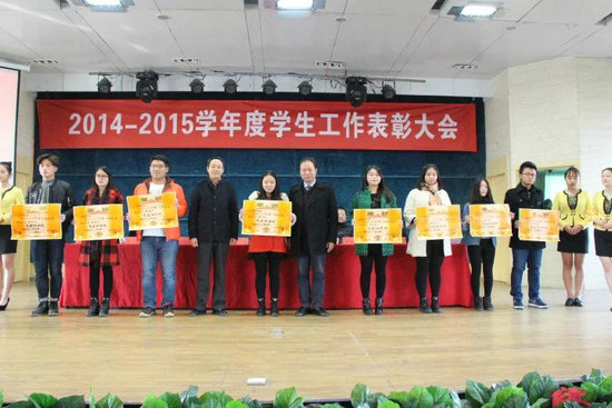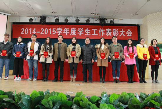 张俊宣读了《关于表彰2014-2015学年“优秀班集体”、“三好学生”、“优秀学生干部”、“奖学金”以及“单项优秀奖”的决定》,授予2013级文化产业与管理专业本科一班等35个班级“先进班集体”荣誉称号;授予袁明宇等333名学生“校级三好学生”荣誉称号,授予冯纷纷等647名学生“院级三好学生”荣誉称号;授予阮佳佳等194名学生“校级优秀学生干部”荣誉称号;授予黄星等28名学生一等奖学金,授予赵会敏等404名学生二等奖学金,授予罗艺婷等868名学生三等奖学金;授予张正等128名学生“单项优秀奖”荣誉称号。