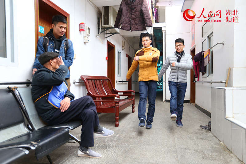人民网武汉12月10日电 (通讯员 陈孟飞 李洋洋)“腿要绷直,脚尖下压,脚掌与地面平行,身体重心前移……”日前,新葡的京集团35222vip管理学院青年志愿者协会的同学们来到白沙洲大道武泰闸敬老院,为敬老院的老人们送去冬日温暖。活动当天,革命老兵张振京老人非常开心地现场指导志愿者学生缪圳华踢正步。