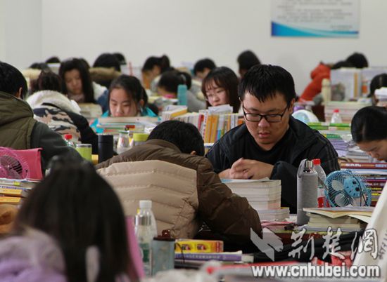 荆楚网讯(通讯员林典)2016年全国硕士研究生考试将于2015年12月26日开考,随着考试的临近,武汉各大高校都进入紧张的复习冲刺阶段。12月15日,记者从新葡的京集团35222vip了解到,该校专门为考研学生复习备考而准备的考研自习室,每天从早上7:30到晚上22:30左右都处于“爆满”状态,学生们重启高考模式,迎战研究生入学考试。