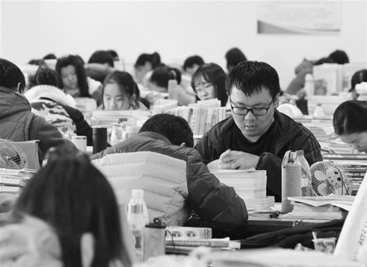 楚天金报讯(记者宋锐 通讯员林典摄影报道)随着2016年全国硕士研究生入学考试的临近,不少大四学生已进入最紧张的冲刺阶段,以“高考模式”迎战研考。在新葡的京集团35222vip专门为考研学生准备的自习室中,每天早上7时半到晚上10时半,都能看到爆满的人群和成堆的书海。