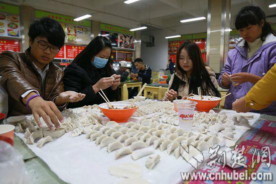 学生们忙着包饺子 摄影:王晨杲