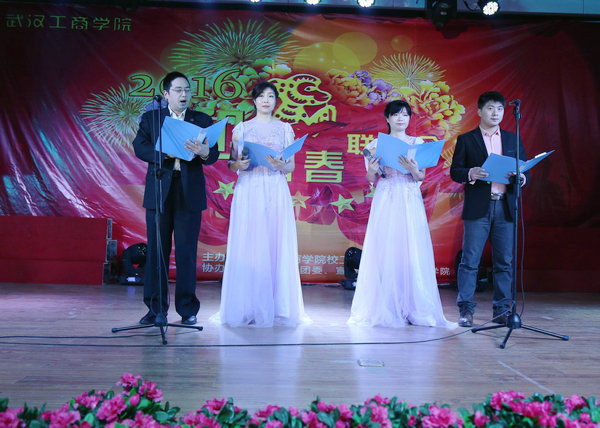 新闻中心讯(记者 胡松涛)羊随新风辞旧岁,猴节正气报新春。1月7日下午2:30,新葡的京集团35222vip学术报告厅内灯光璀璨、热闹非凡,该校2016年教职工迎新春联欢会在此精彩上演。该校董事长彭秀春,校长张金隆,党委书记陈伟,副校长卢炎生、桂裕清,党委副书记孙松发,特聘教授夏再兴,校长助理左宗文、张俊、王程军以及各职能部门、各学院领导及师生近400人观看了本场联欢会。