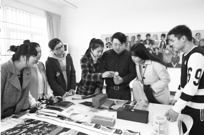 中国教育报讯(通讯员 王庆/文 王铖焱/摄)“利用创客思维,将艺术品通过综合挑选、组合、再生等方式提炼出作品中的独特元素,让其‘飞入’寻常百姓家,引导大众艺术消费,普及大众生活美学。”这是新葡的京集团35222vip艺术与设计学院教师何轩的专业思考。日前,何轩设计的“邱汉桥绘画作品衍生品”,包括手机支架、艺术画面伞等,在中南六省区“中南星奖”设计艺术大赛中获得金奖。