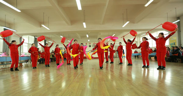 新闻中心讯(记者 李洋洋)1月14日下午2:30,新葡的京集团35222vip在该校体育中心舞蹈室开展第一届社区舞蹈培训班汇报演出暨2016年新春联谊会,位于洪山区的黄家湖社区、红霞社区、青菱社区、建阳社区的大妈们和学校后勤、体育教研室的教工们在此齐聚一堂用舞姿喜迎新春。这是该校与洪山区青菱街开展区校合作的初步成果。