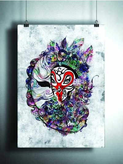 这张国画风格的学生作品中,既有京剧脸谱元素,又有四川“变脸”的动态描摹 通讯员蓝静 供图