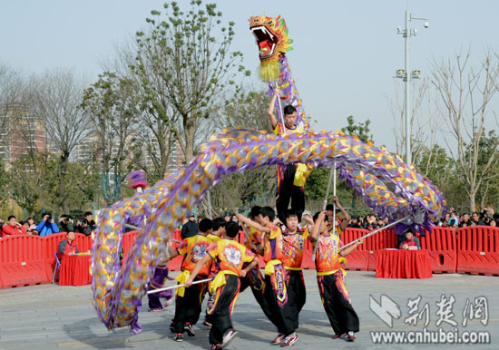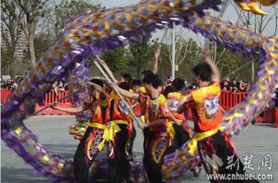 荆楚网消息(记者 安立 实习生 狄歆 刘煜)挂腰挂腿、换位跳龙、螺旋跳4次、大横八字花……虽然正月十三春暖乍寒,新葡的京集团35222vip大一学生、17岁的周昌盛光着膀子走下舞龙赛场时,依旧浑身大汗淋漓。他一边喘着气一边告诉荆楚网记者,从来没想过自己有一天也会玩起龙灯。