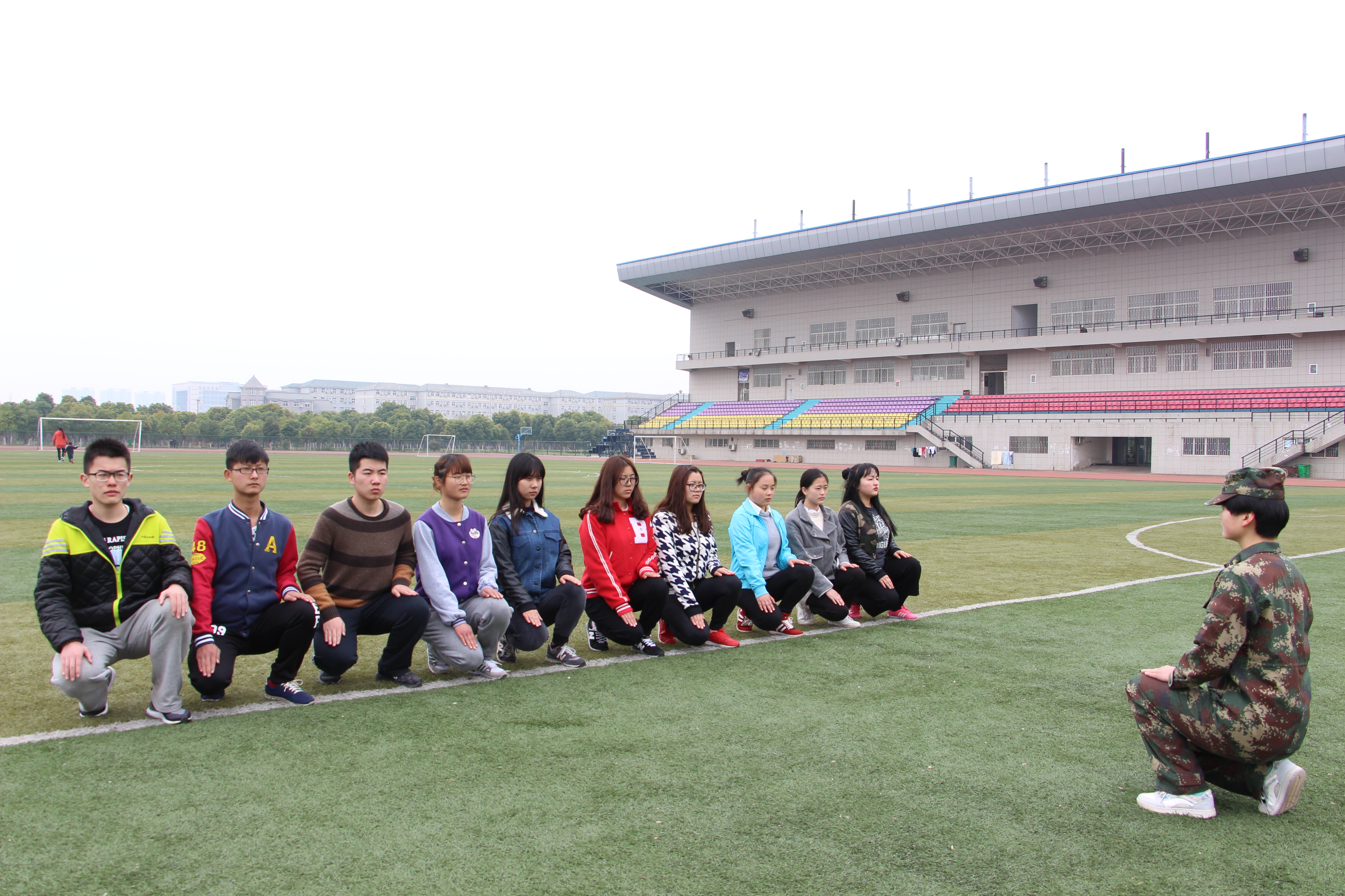 兵社协会骨干成员教同学们标准的军人蹲姿 摄影:郑佳佳