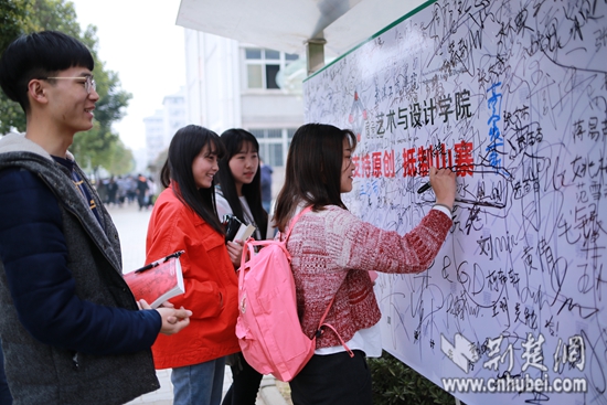 荆楚网消息(通讯员 李洋洋)3月15日是国际消费者权益保护日,上午9:00,新葡的京集团35222vip艺术与设计学院的师生在校园内,积极响应一般工作室创始人沈文蛟在创意界发起的“支持原创,反对山寨”的万人签名活动,数百名学生在签名板上表达了自己坚持创新、创意的原创态度。