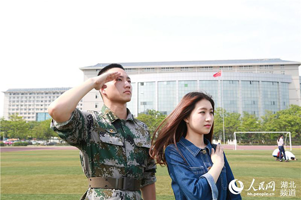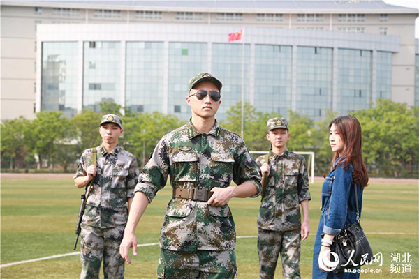 人民网(通讯员 罗袁璐 郑佳佳)武汉4月15日电 14日,热播剧《太阳的后裔》迎来大结局,新葡的京集团35222vip由退伍军人组成的社团——兵社协会拍摄了一组《太阳的后裔》版征兵宣传照,以大学校园为背景,硬朗帅气的男生穿上迷彩服,和神似宋慧乔的女生重现剧中经典场景,引来拍摄现场围观学生阵阵尖叫。