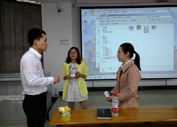 随后,杨艳钊经理向大家介绍了本次面试的基本环节。他说,通过无领导小组讨论,主要考察学生们的创新思维;荒岛求生、七巧板游戏则是考验团队合作精神;最后的面谈则是一个综合的评价,让学生根据自身的特点来表达自己对于职场的想法。招聘现场,同学们身着正装,手拿早已准备好的个人简历,自信从容的参与各个面试环节,