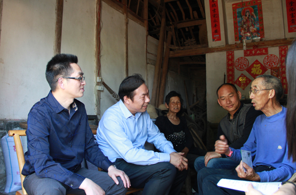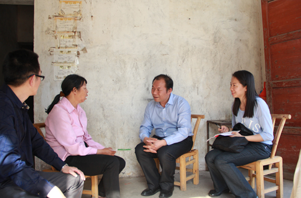 陈伟(右二)倾听王民安大娘(左二)的心声 摄影:王庆