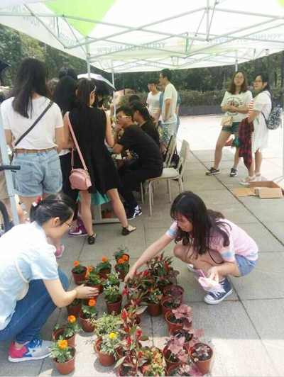 现场还开展了环保知识猜答活动,问题涉及到生态安全、低碳经济、环护知识及环保政策法规等,吸引了众多学生的参与,凡是答对5个环保问题的学生都可以现场领取盆栽一盆。