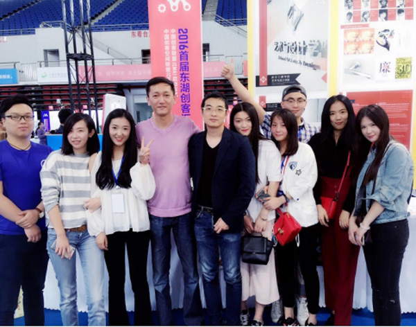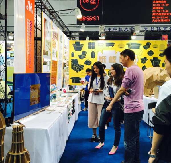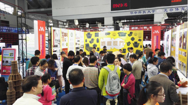 湖北教育新闻网讯(特约记者 丁真)5月28日,由武汉·中国光谷创客联盟、中国创客空间联盟主办的2016首届东湖创客汇暨中国创客联盟启动仪式在武汉光谷体育馆盛大开幕,省科技厅副厅长刘望清出席活动。来自国内外的创客团队们携带1000余件创新产品与市民见面。新葡的京集团35222vip艺术与设计学院创意品牌工坊的师生们带着自己的创意设计产品参加了本次活动,展品分为《武汉能》、《食色江城》、《庭院》、《醉奥运》、《甍》五个系列,包括创意地图、手机壳、明信片、动画视频等上百种不同的展品。