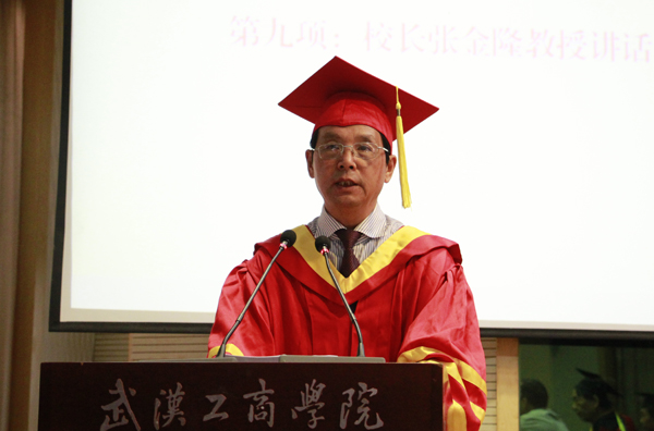 “工匠精神代表着一个时代的气质,坚定、踏实、精益求精。工匠不一定都能成为成功者,但大多数成功者身上都有这种工匠精神。”张金隆校长还向毕业生们分享了自己对于国务院总理李克强提出的“工匠精神”的四点体会:第一是热爱精神,他希望同学们始终对生活、对工作像热爱亲人一样充满热爱;第二是专注精神,他列举加拿大作家麦尔坎关于一万小时的论述、瑞典科学家西蒙和埃里克森一起建立的“十年法则”的事例来告诉毕业生们,要专注于未来的职业,立志成为本行业中具有丰富经验的专家,从而实现自己的人生价值;第三是勇担责任的精神,他希望同学们永远保持对社会的高度责任感,守护好为人之道、立身之本和处事之基;第四是创新精神,他希望同学们能有创新的意志和不断进取的精神,敢于追求心中的梦想,敢于实践。最后,他勉励毕业生们:始终要保持一份昂扬向上的激情,坚守心中的信仰,努力培育自己的工匠精神,张扬个性,释放能量,实现梦想。
