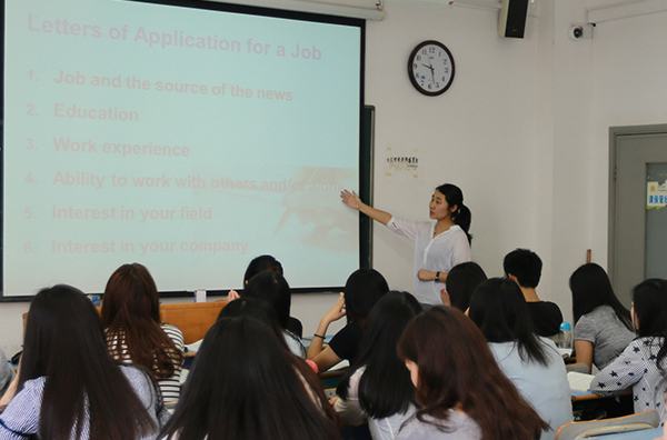 (听课学生:吴田芳 李蓉 蓝雯杰 摄影:代悦涵)上学期时就听说经济与商务外语学院的马洁老师讲课生动有趣,课堂互动性强,学生学习热情高。5月26日上午,我怀着好奇的心情,和14级英语专业的29位学生一起走进外语楼225教室上马洁老师的《英语专业写作》课。