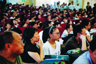 考生和家长们认真听志愿填报报告,通讯员代悦涵 摄