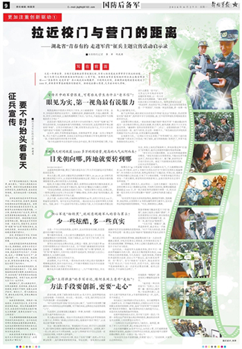 此言不虚。以武汉为例,江城拥有高等院校82所,在校大学生达104万,数量居全国前列。每年征兵宣传进校园,一般由征兵办公室的军事机关具体牵头。当前,该市一个人武部平均不到5名现役干部,人少任务重的矛盾比较突出,再加上高校区域面积大,单纯依靠这种“打游击”宣传模式,能否达到理想传播效果值得商榷。