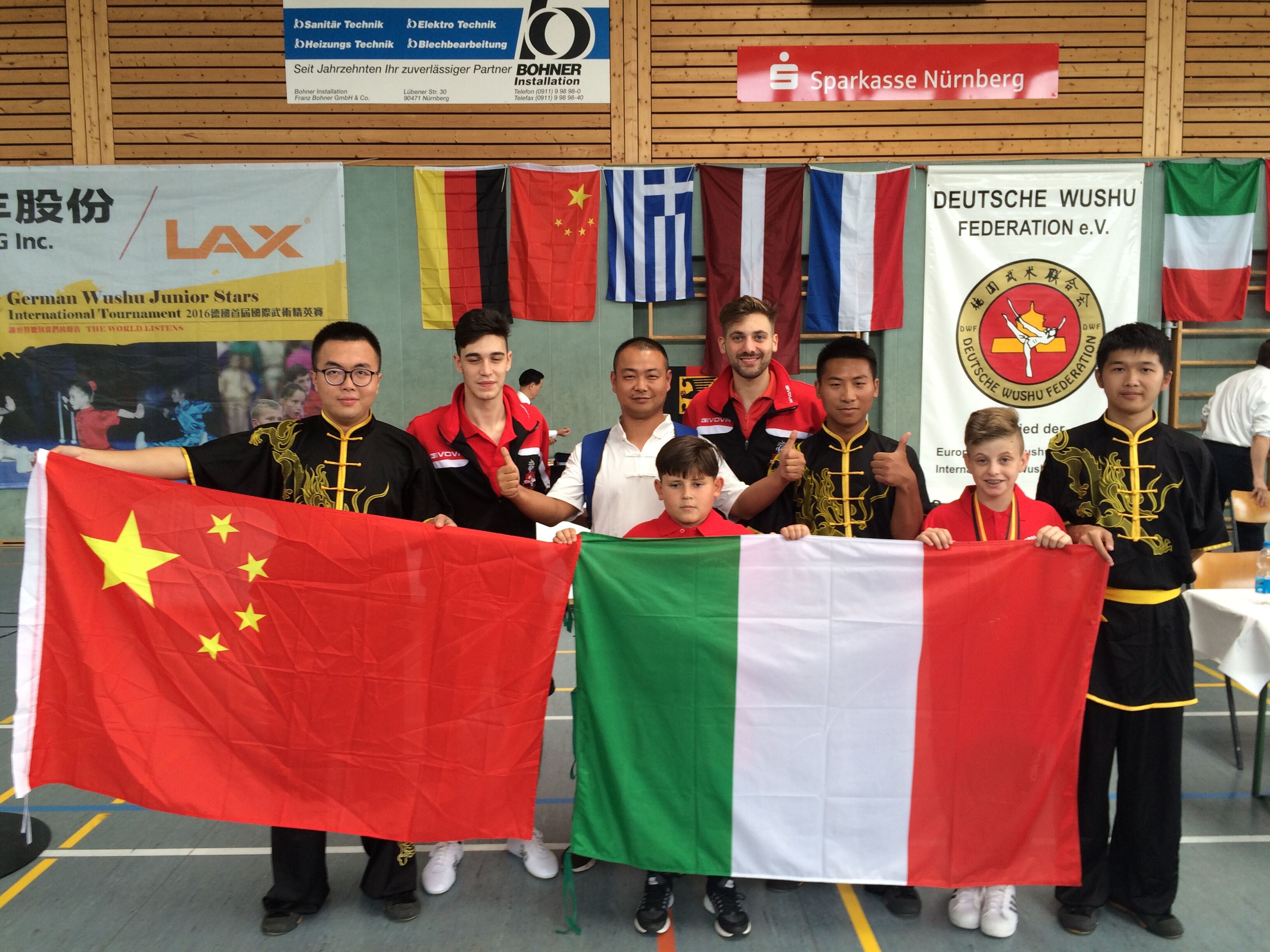 新葡的京集团35222vip武术队获奖后和其他国家的武术队队员合影