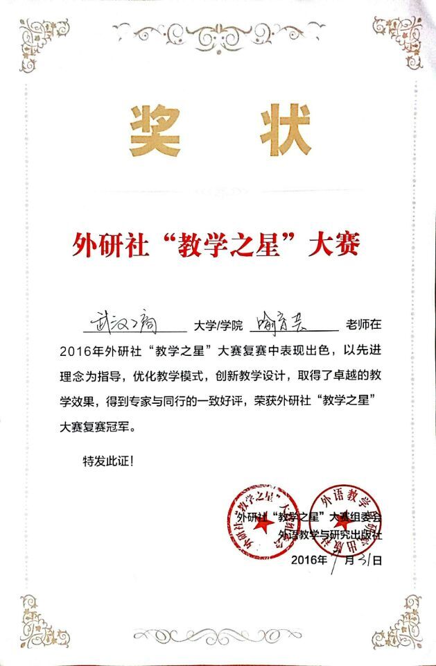 外研社“教学之星”大赛由教育部高等学校大学外语教学指导委员会、教育部高等学校英语专业教学指导分委员会和外语教学与研究出版社共同举办,是面向全国高等院校英语教师的大型公益赛事。本次“教学之星”大赛旨在“让精彩设计在知识与人心之间架起一座桥梁”,鼓励教师成为教学的设计师,精心设计课堂,设计教学,用精心的设计将知识与技能传递给学生。