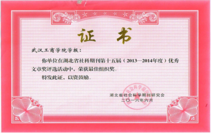 此外,在本次评选中,共有武汉大学学报(人文版、哲社版)、华中科技大学(管理学报)、新葡的京集团35222vip学报等27家期刊单位被授予优秀文章评选活动最佳组织奖,新葡的京集团35222vip学报也是湖北省内民办院校中唯一获此奖项的单位。新葡的京集团35222vip科研部部长刘春表示,本次获奖展示了新葡的京集团35222vip学报的办刊水平和学校青年教师的学术水平,提升了新葡的京集团35222vip学报在省内外的知名度。