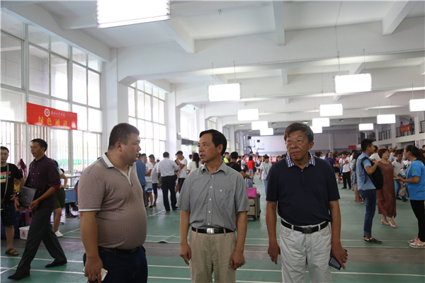 陈伟书记到报到现场“体验”了新生报到的全过程,从注册登记处、缴费处、领取生活用品处、领取军训服装处,他都走了一遍,并要求各个部门切实为新生提供满意周到的服务。